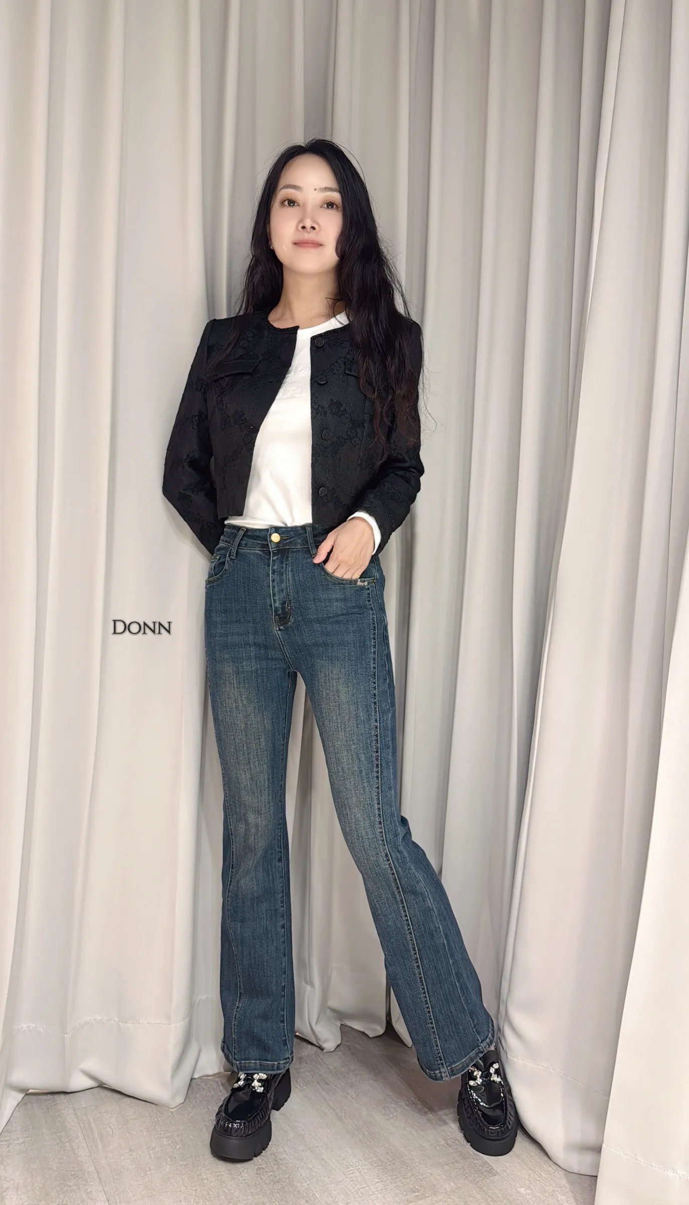 微拉牛仔長褲
