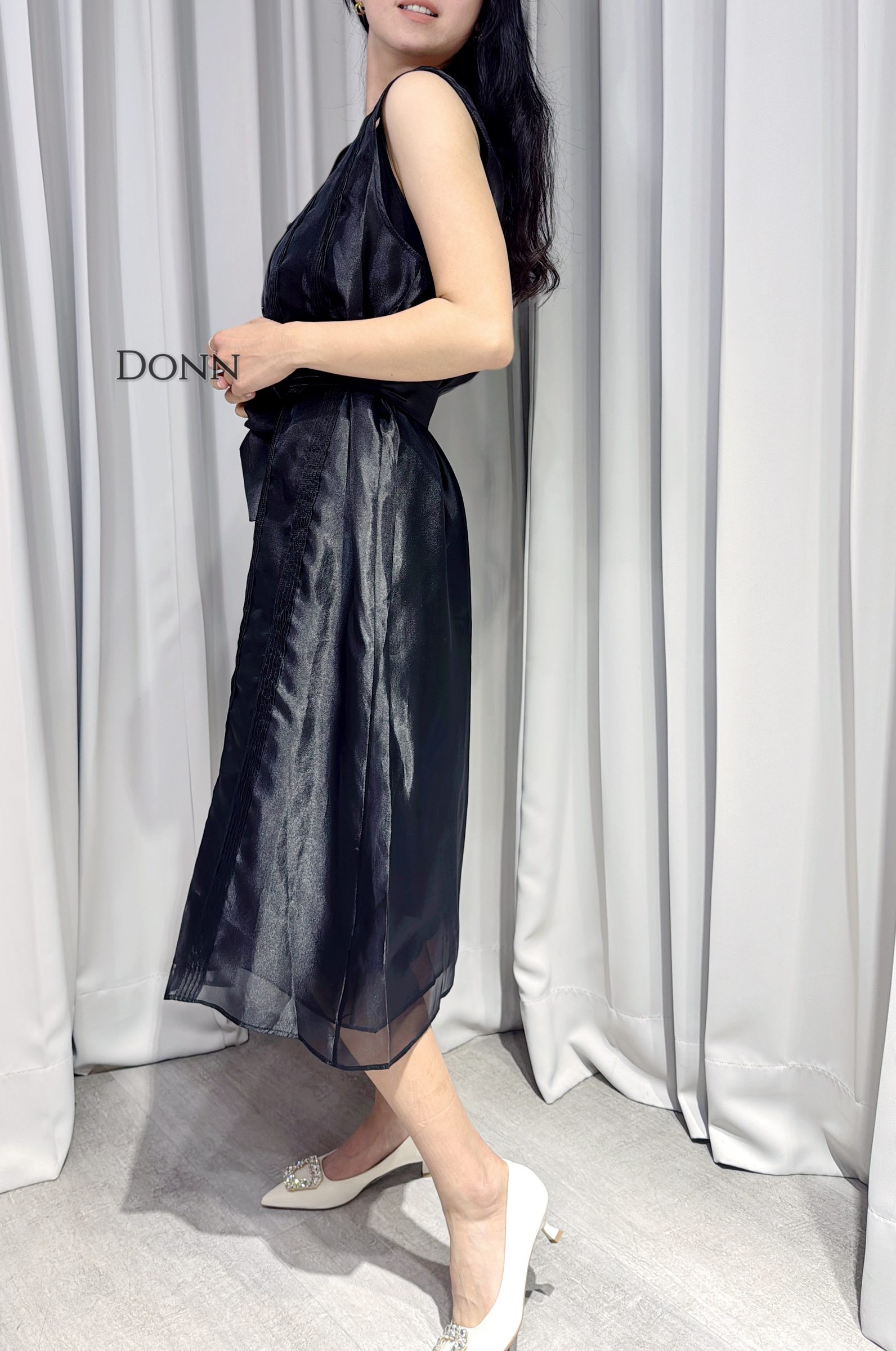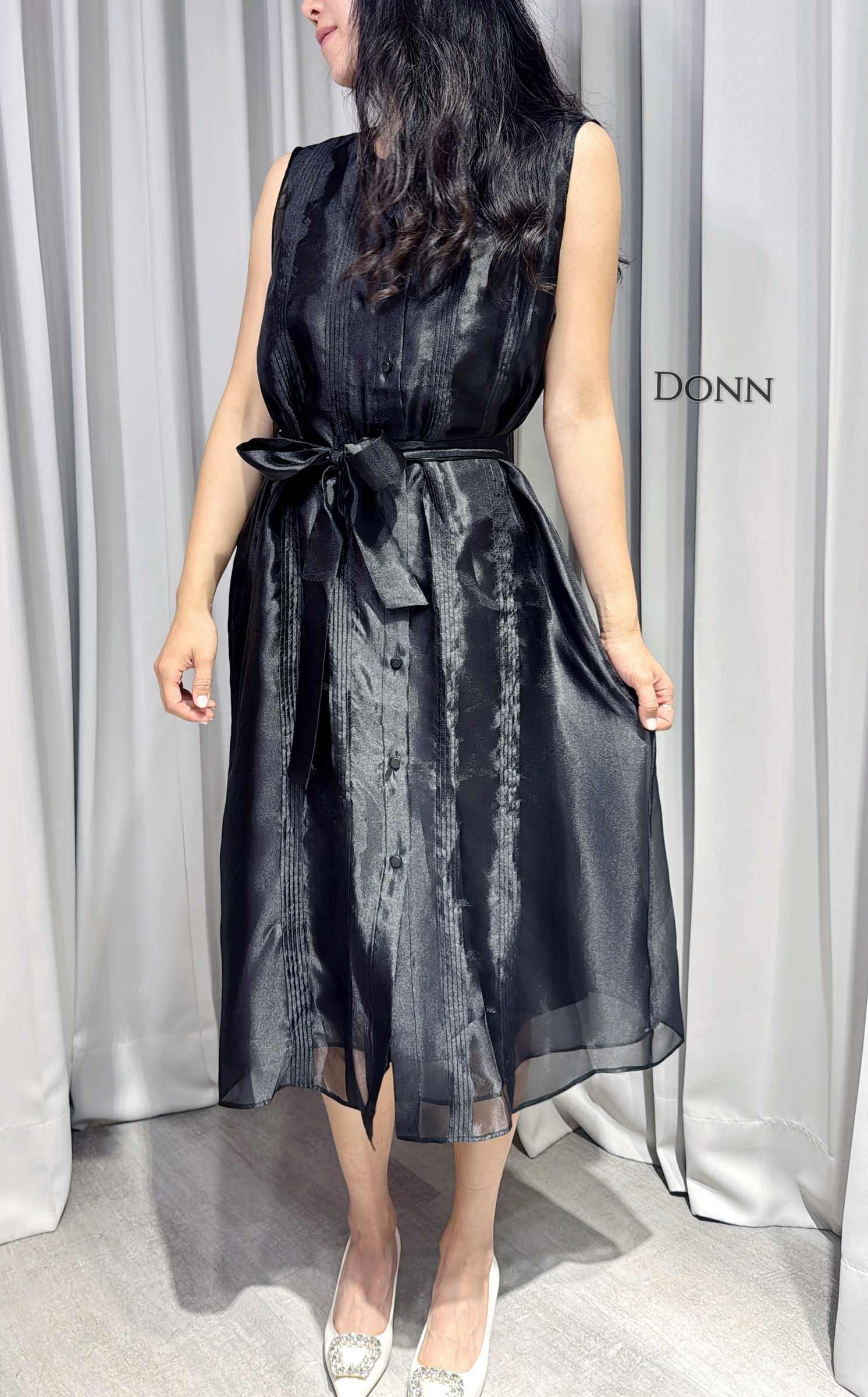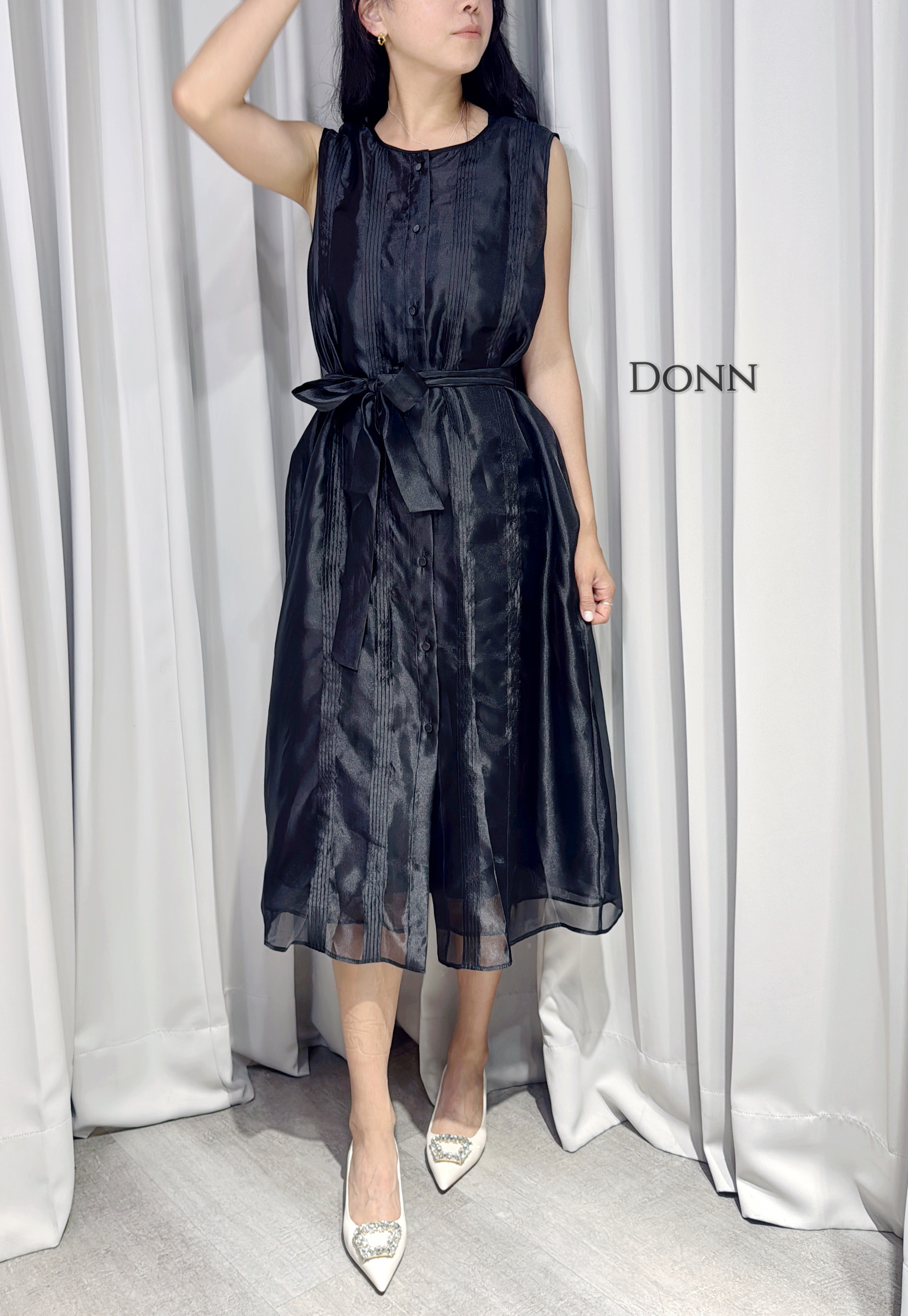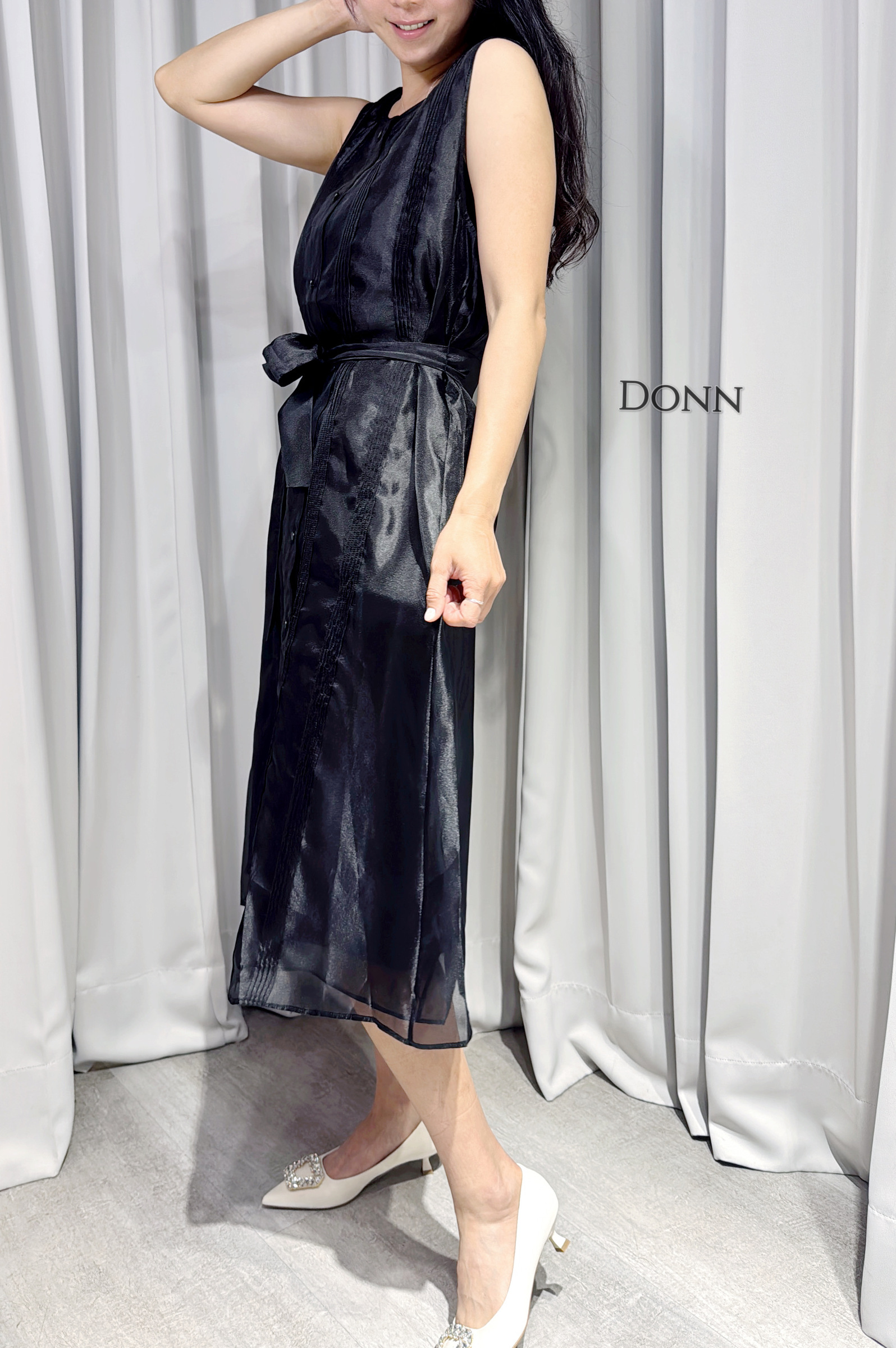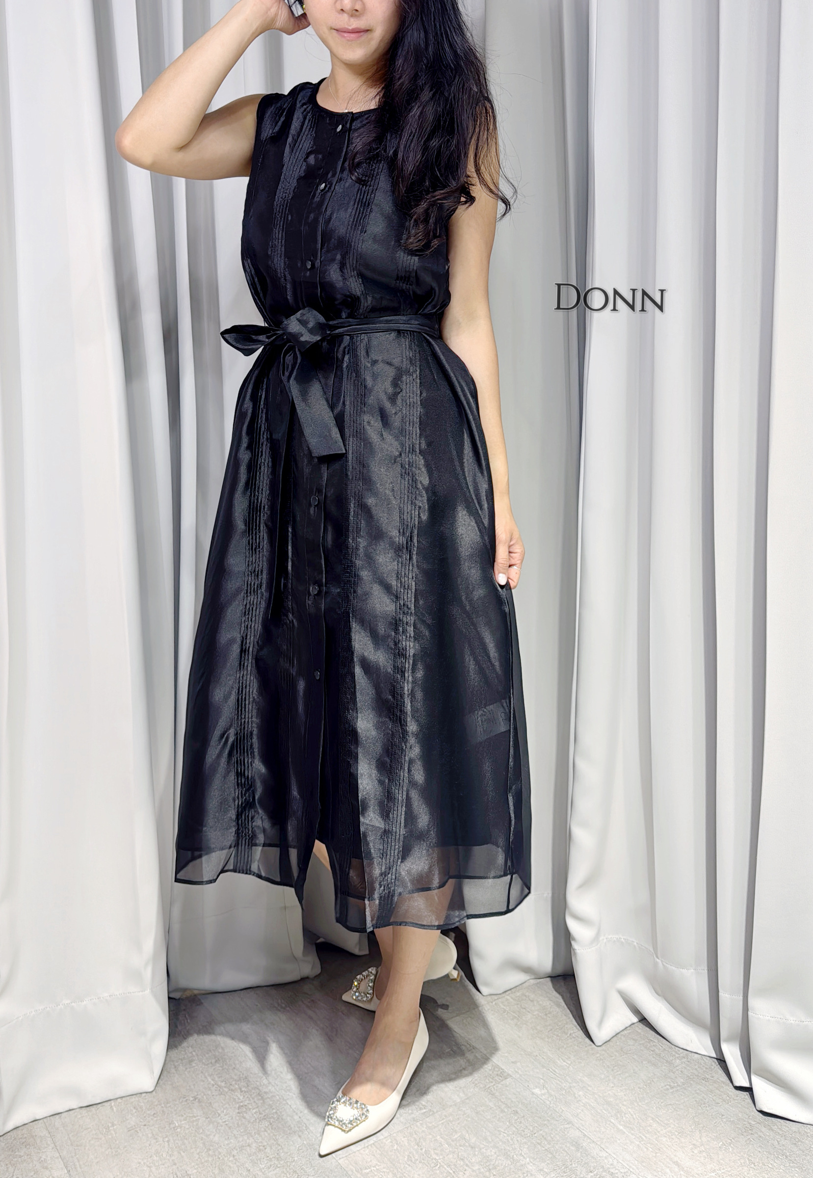 美肩袖兩穿連衣裙(附內搭+本布腰帶)