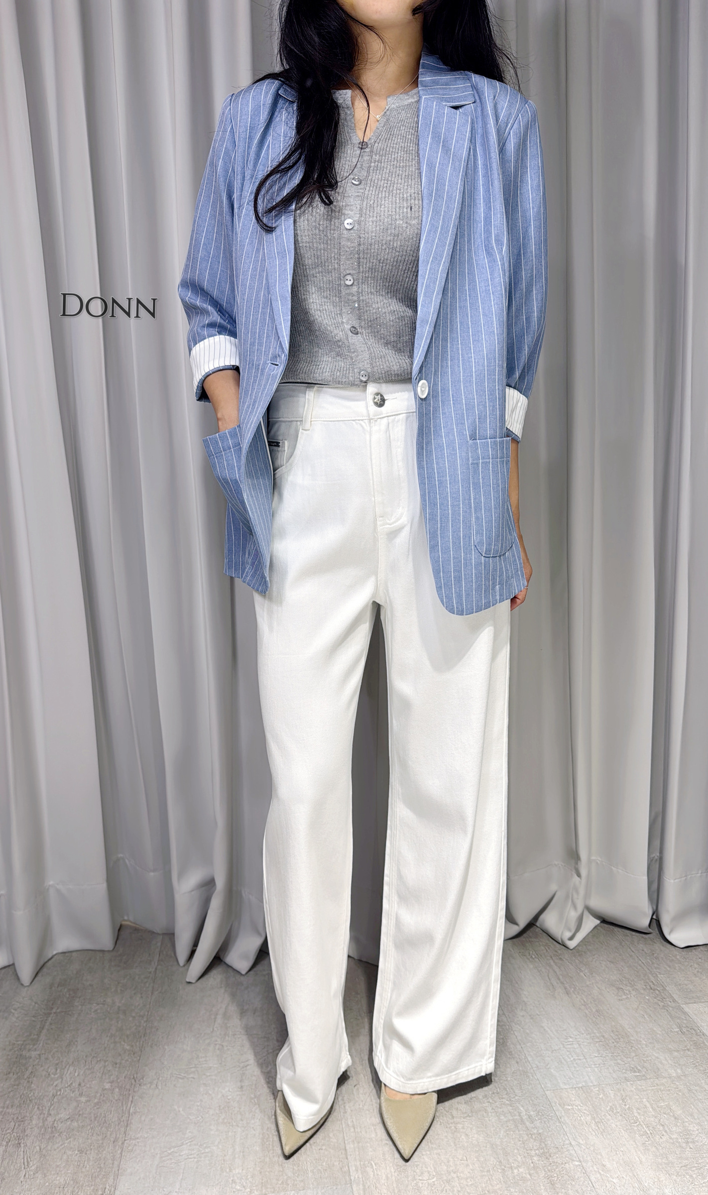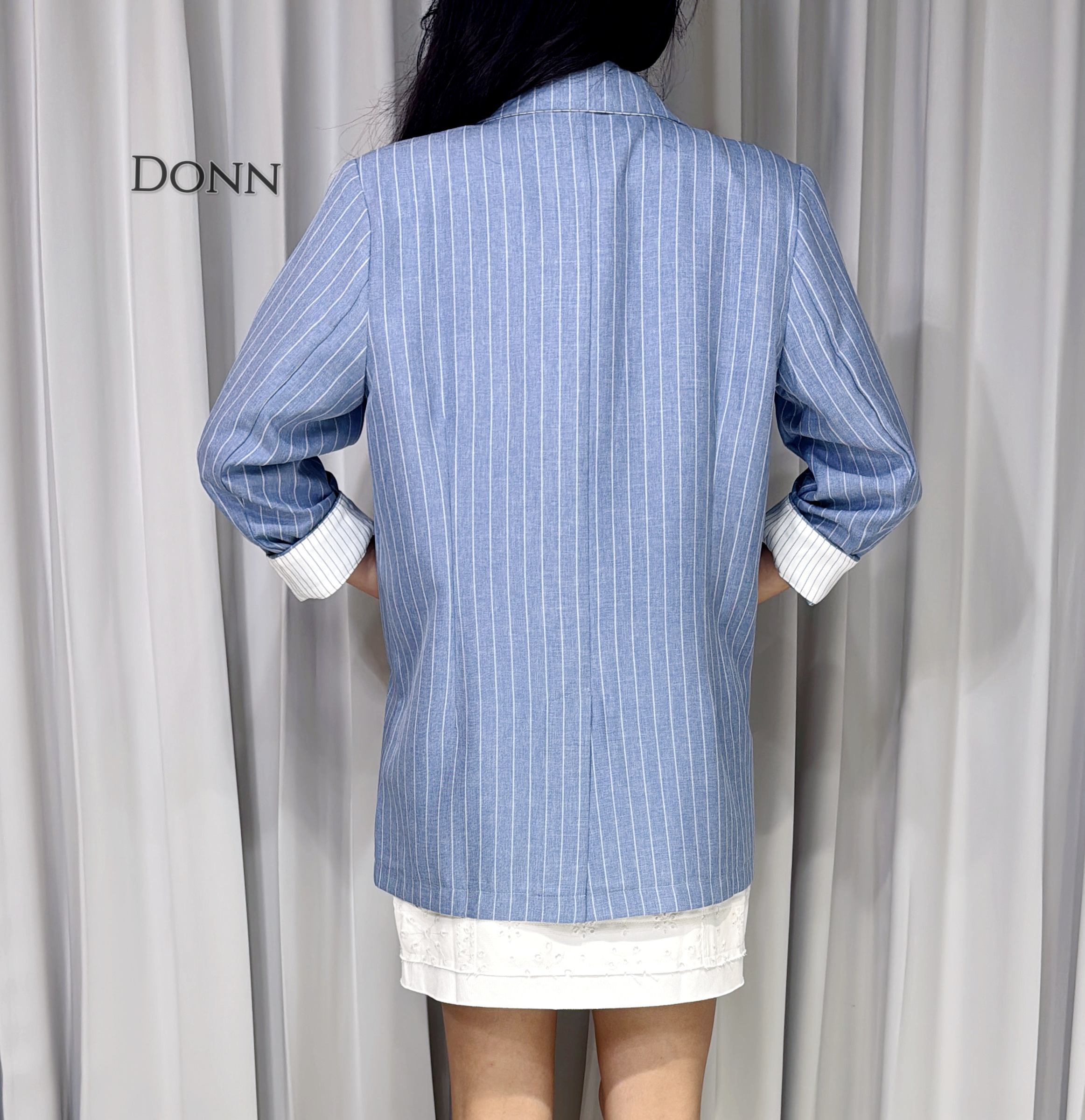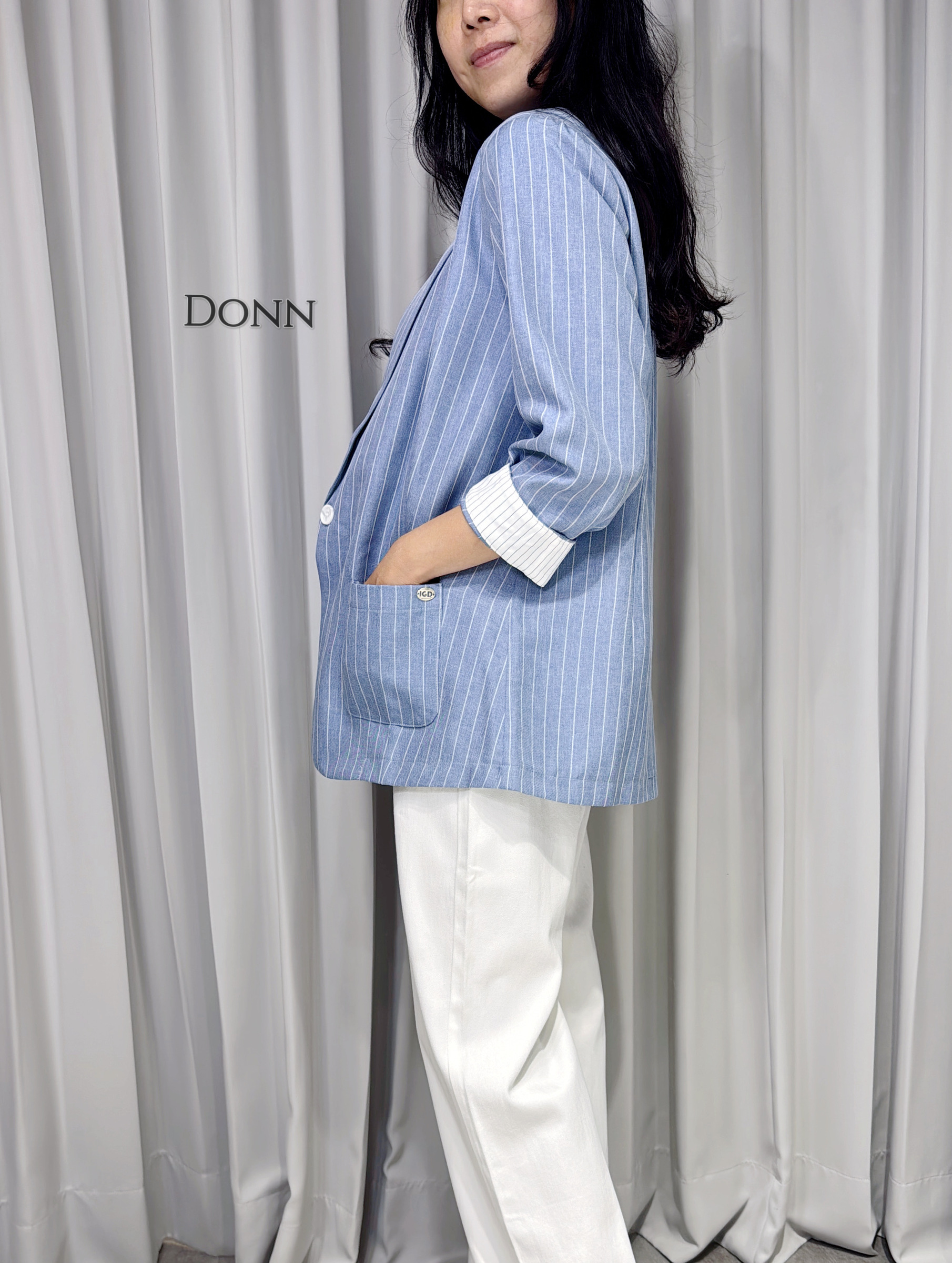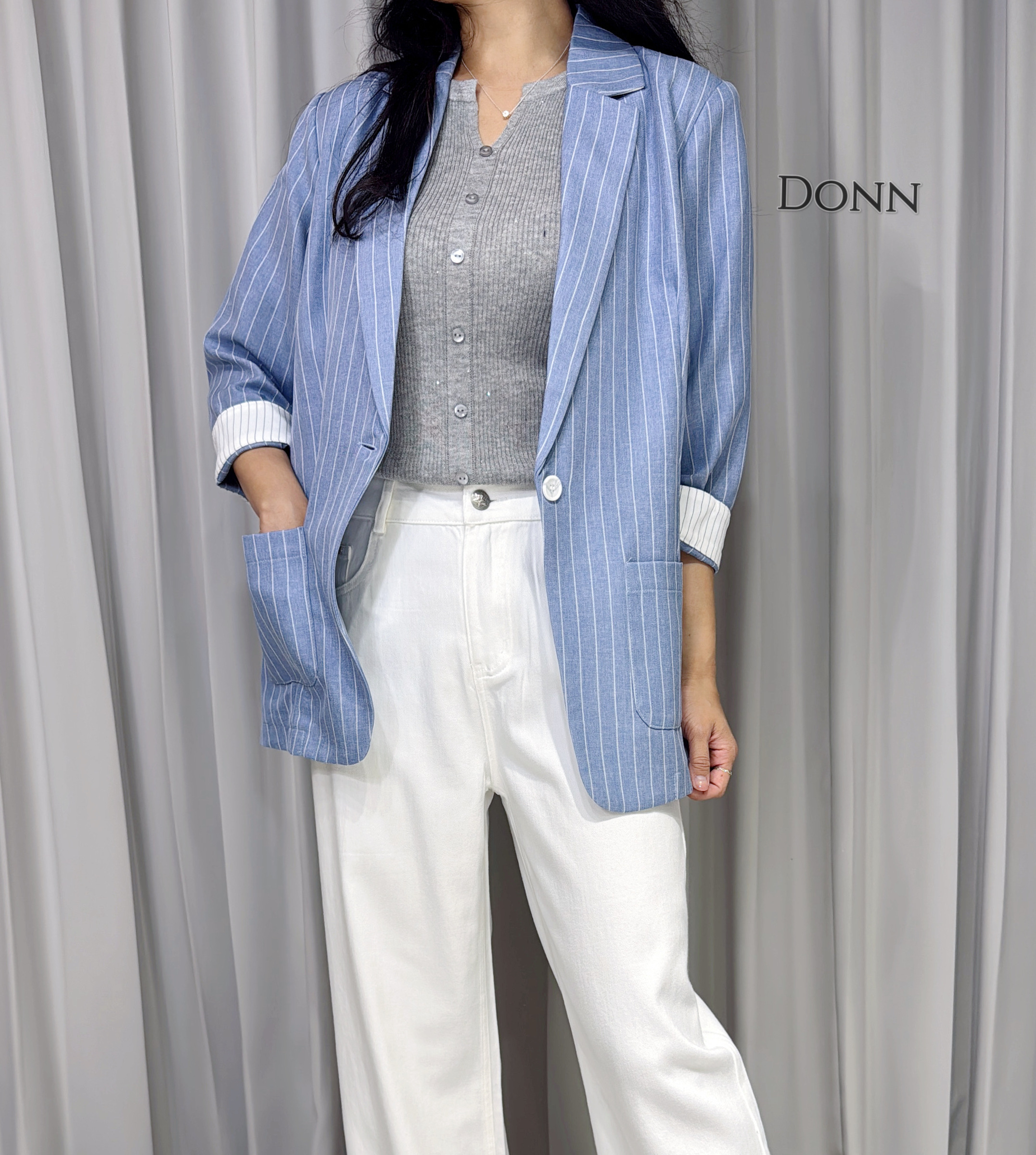 細直條翻袖西外
